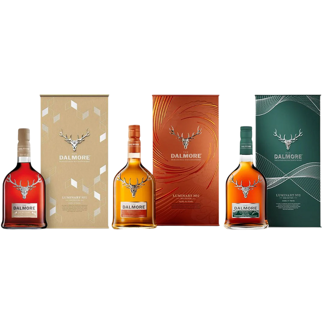The Dalmore Luminary Set of 3 — это коллекционный набор, созданный в сотрудничестве с V&A Dundee, объединяющий искусство виски и архитектуры. В набор входят три выдающихся релиза: The Dalmore Luminary No.1, No.2 и No.3 — каждый воплощает определённую стадию мастерства, от вдохновения до совершенства. Эти виски демонстрируют уникальное влияние различных бочек — от бурбонных и шерри до редких португальских и японских — создавая неповторимую композицию вкусов и ароматов.
