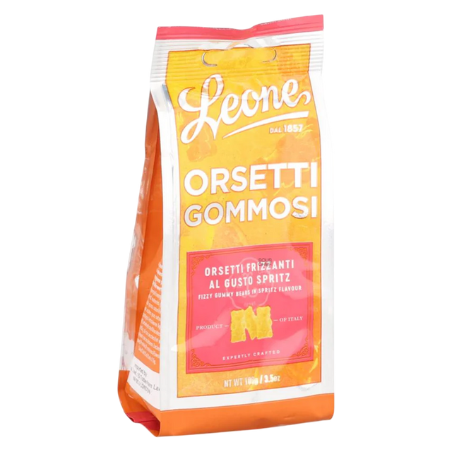 Это авторские фруктовые желейные мишки от итальянского бренда Leone, вдохновлённые вкусом и ароматикой культового аперитивного коктейля Spritz (с цитрусовыми и лёгкой пряной нотой). Каждая конфета отражает характер коктейля: энергичные фруктовые акценты, свежесть и лёгкая горчинка, смягчённые сладостью.